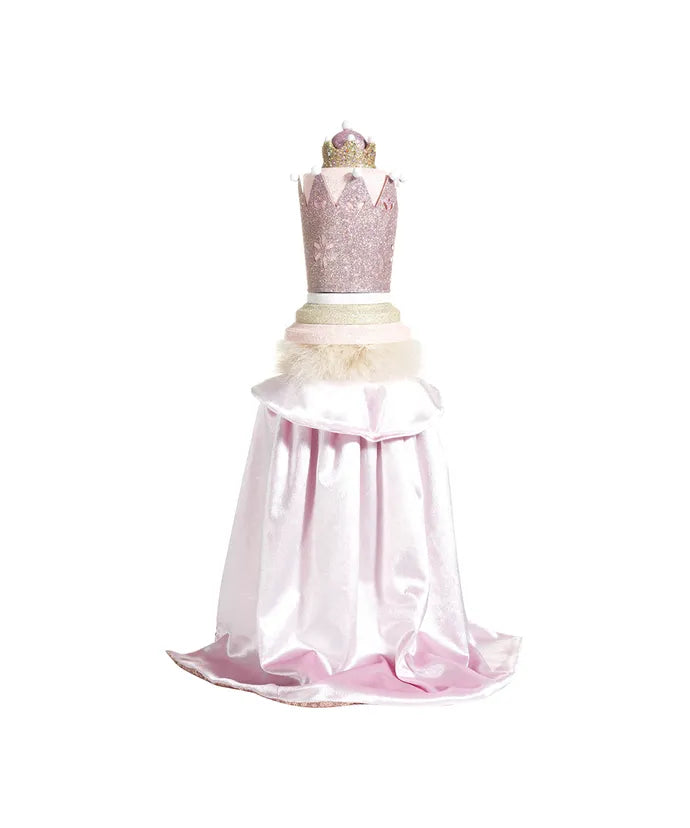 Make a regal statement this holiday season with the Hollywood Nutcrackers™ Pink King Nutcracker by Kurt Adler. Standing an impressive 19 inches tall, this exquisite piece combines elegance and whimsy with its shimmering blush and gold palette. The nutcracker features a glittered crown, jeweled detailing, and a luxurious velvet cape lined in sequins for a touch of royal glamour.