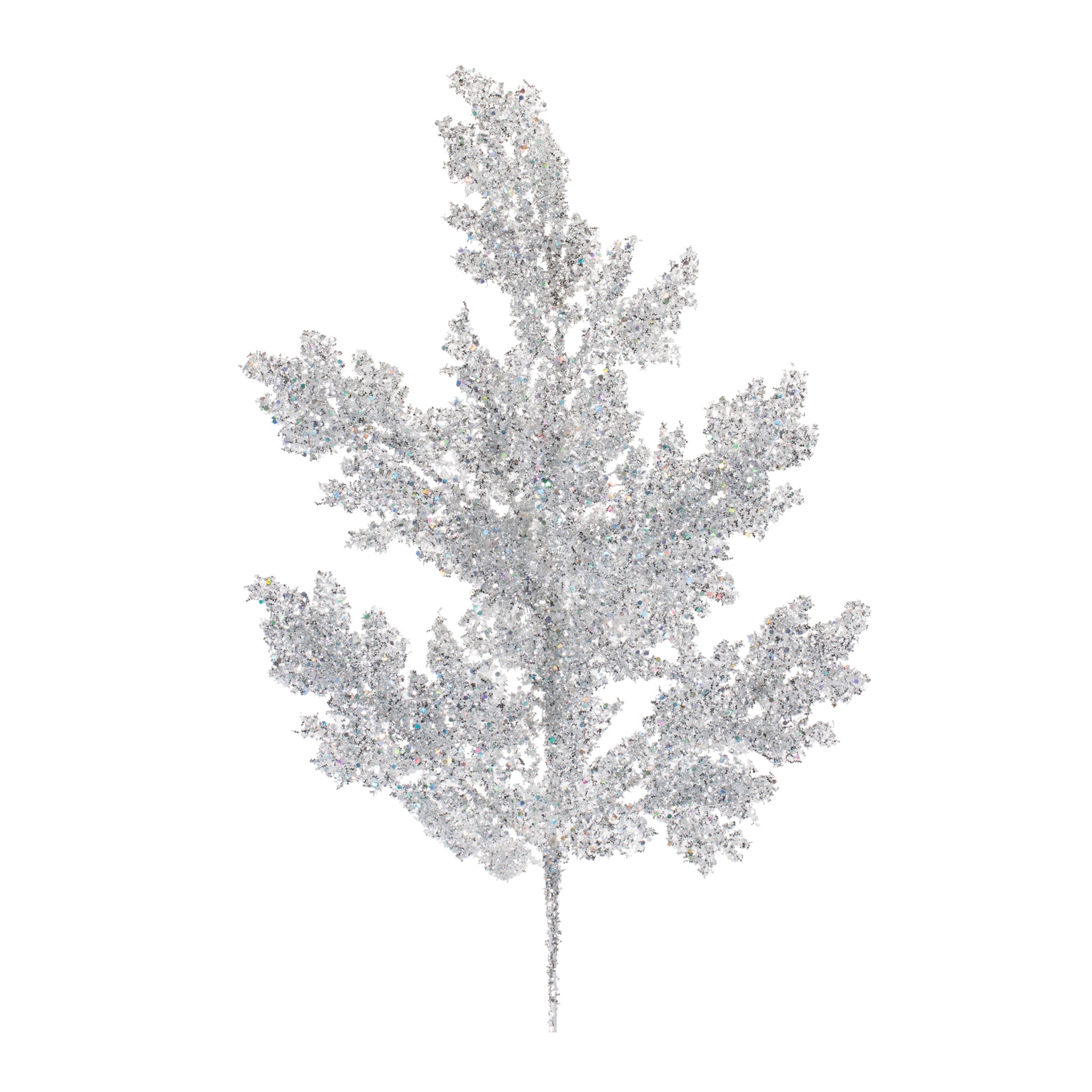 Add icy shimmer to your holiday arrangements with this 27" Silver Glitter Spray. Covered in sparkling silver glitter with a frosted, textured finish, this piece brings instant brightness and dimension to Christmas trees, garlands, wreaths, and centerpieces.
