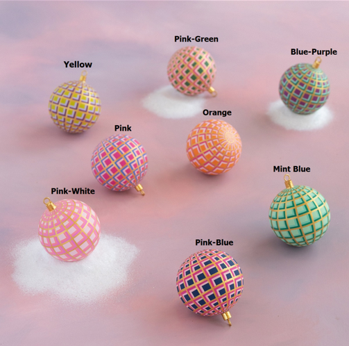 Bring bold, joyful color to your holiday décor with Glitterville’s Art Deco Plaid Ball Ornaments. Crafted from lightweight papermache and hand-painted in vibrant geometric patterns, each ornament is a little sphere of whimsy—perfect for trees, garlands, bowls, and festive displays.