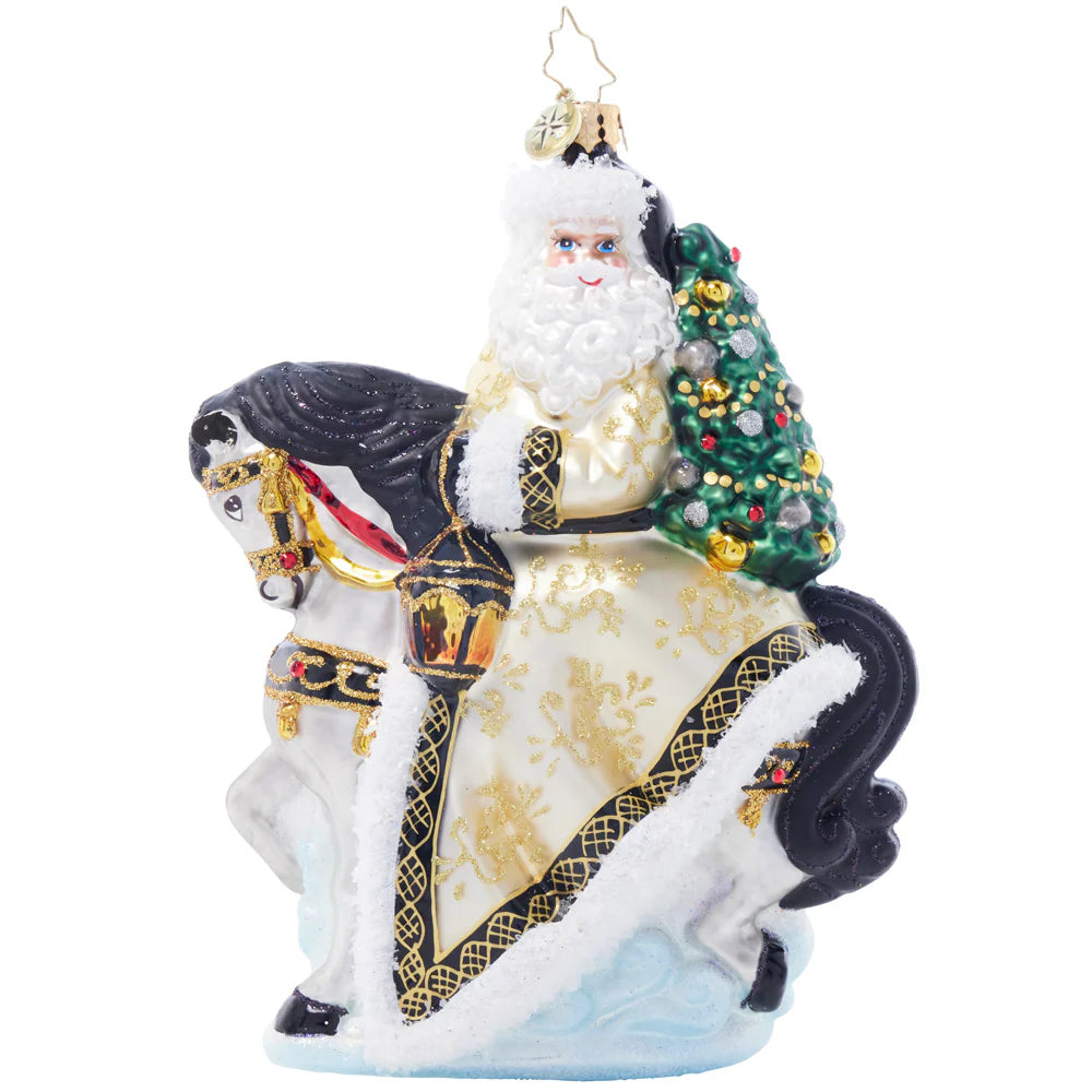 Santa's trusty steeds adorned in coats of shimmering gold, prancing through a winter wonderland. Get ready to welcome a dash of equine enchantment to your celebrations.